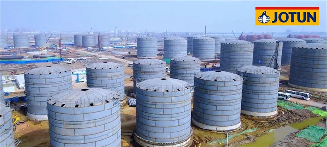 佐敦的Tankguard系列儲罐內襯漆和Jotatemp系列耐高溫漆助力了盛虹石化300萬立方原油/成品油罐區(qū)、全廠管道及設備涂刷。